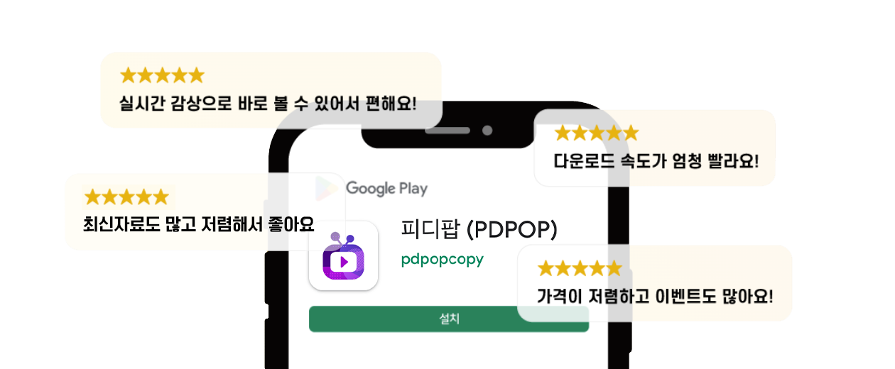 앱을 설치하신 후 별 다섯개와 함께 피디팝을 응원하는 리뷰를 작성해 주세요!
